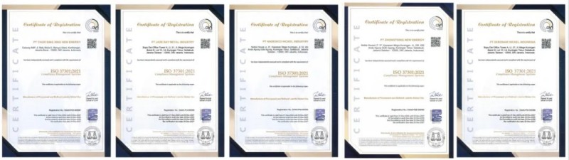 2024年10月,中偉印尼大區(qū)與國際專業(yè)評級機(jī)構(gòu)DAAS展開評審工作,針對中偉股份印尼大區(qū)中青新能源有限公司、印尼中偉鼎興新能源有限公司、印尼德邦鎳業(yè)有限公司、翡翠灣金屬工業(yè)有限公司、納德思科里克工業(yè)有限公司五個主要生產(chǎn)主體同步開啟認(rèn)證工作,并于近日完成全部認(rèn)證。
